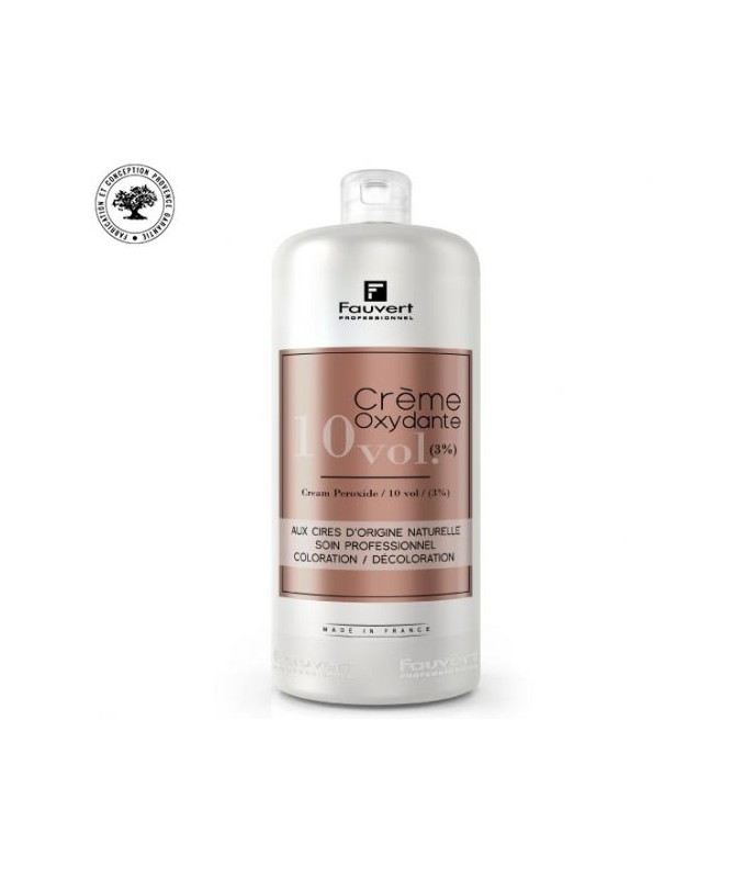 Oxydant pour coloration. Crème oxydante de Fauvert Professionnel, révèle les colorants organiques dans la coloration permanente et active la décoloration. Texture onctueuse, enrichie en cires d’origine naturelle. Ne coule pas.