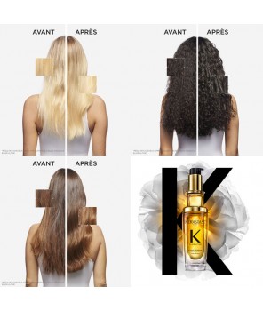 Légère et délicatement parfumée par l'emblématique parfum Kérastase, cette huile capillaire est un soin multi-usages. L’Huile Originale Elixir Ultime peut être utilisée comme bain d’huile avant votre shampoing, avant votre brushing grâce à sa thermoprotection 230°C, ainsi que pour les finitions au moment du coiffage et les retouches au cours de la journée, afin de rendre les cheveux plus lisses, plus brillants et faciles à coiffer. Elle peut être utilisée en complément de toutes les routines Kérastase.