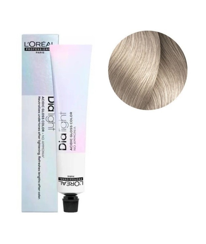 DIALIGHT de L’OREAL PROFESSIONNEL est une coloration ton sur ton acide sans ammoniaque pour apporter des reflets brillants et lumineux, pour personnaliser les couleurs et illuminer les blonds d'une brillance vinyle. Dialight est conçu pour les cheveux colorés et sensibilisés. Une coloration ton sur ton acide sans ammoniaque : foncer et ou raviver les longueurs et pointes délavées pour uniformiser la couleur.