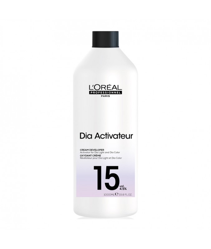 Révélateur Diactivateur 15 volumes de L’OREAL PROFESSIONNEL se mélange avec la coloration Diarichesse ou Dialight. C’est un oxydant spécialement conçu pour être utilisé avec les colorations Diarichesse et Dialight.